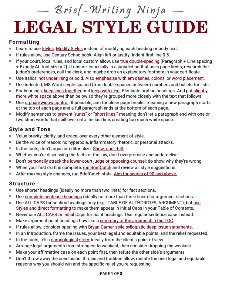 all packed together into one Brief-Writing Ninja Legal Style Guide.