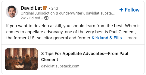 For those with my “Dear 1L” book, don’t forget to review “Interlude No. 6” at p. 259 for my oral-argument advice.