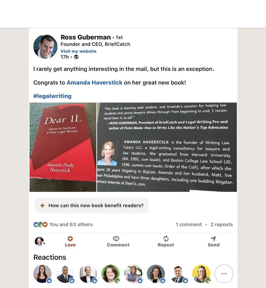 It’s not every day you get someone as renowned as Ross Guberman to feature your book in a LinkedIn post.